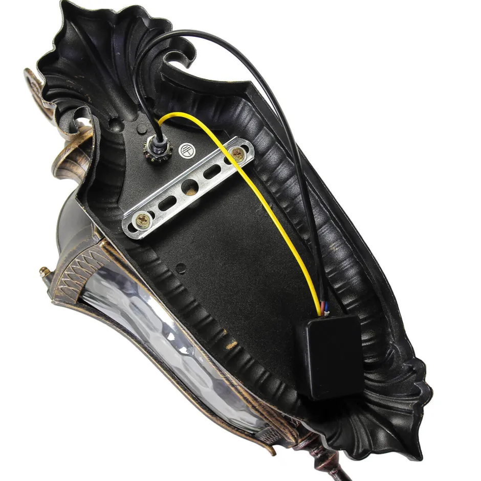 Rustikale Außenwandleuchte in Schwarz Gold antik für Eingangsbereich, Balkon und Terrasse