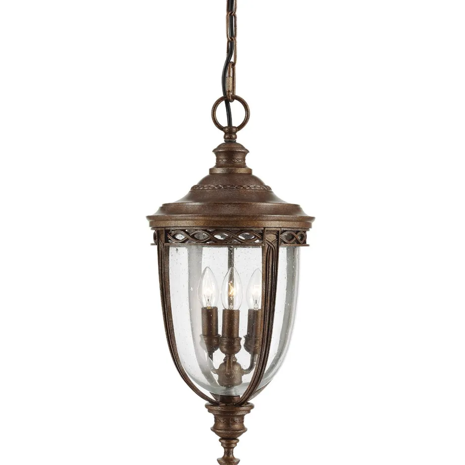 Reich verzierte Pendelleuchte für Außen in edlem Bronze
