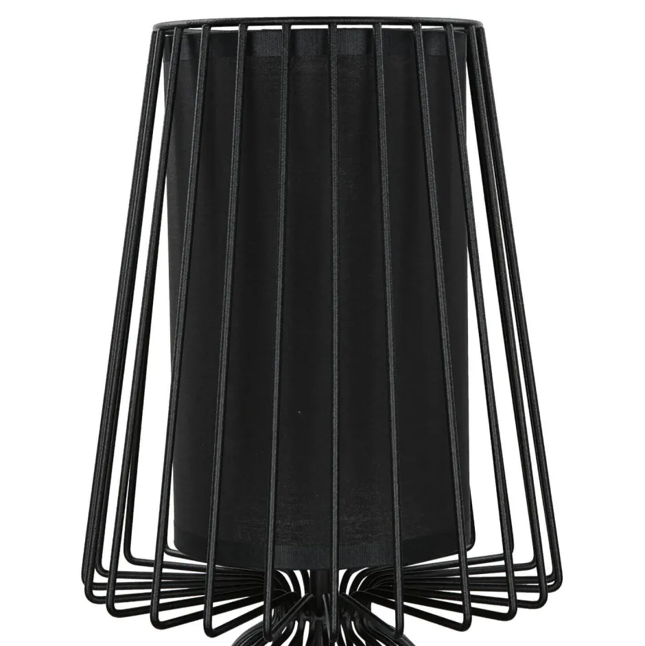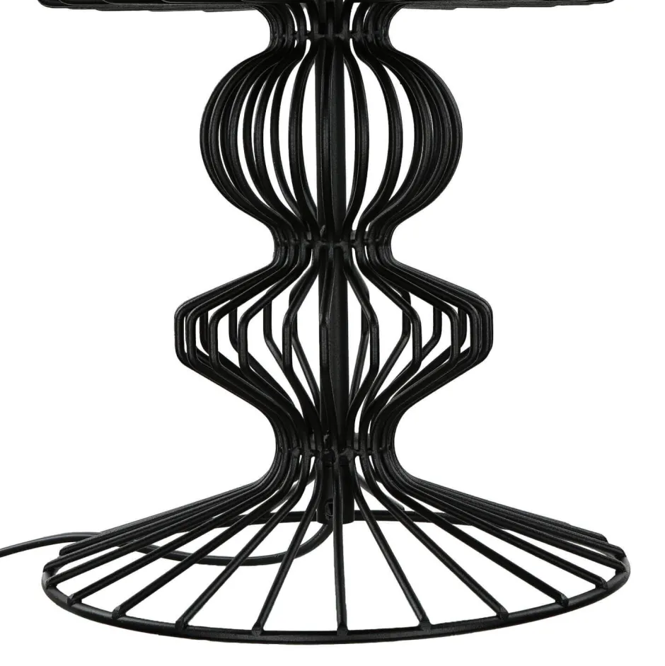 Das Gestell besteht aus Metallstreben, die durch ihre Form die Silhouette einer klassischen Tischleuchte beschreiben