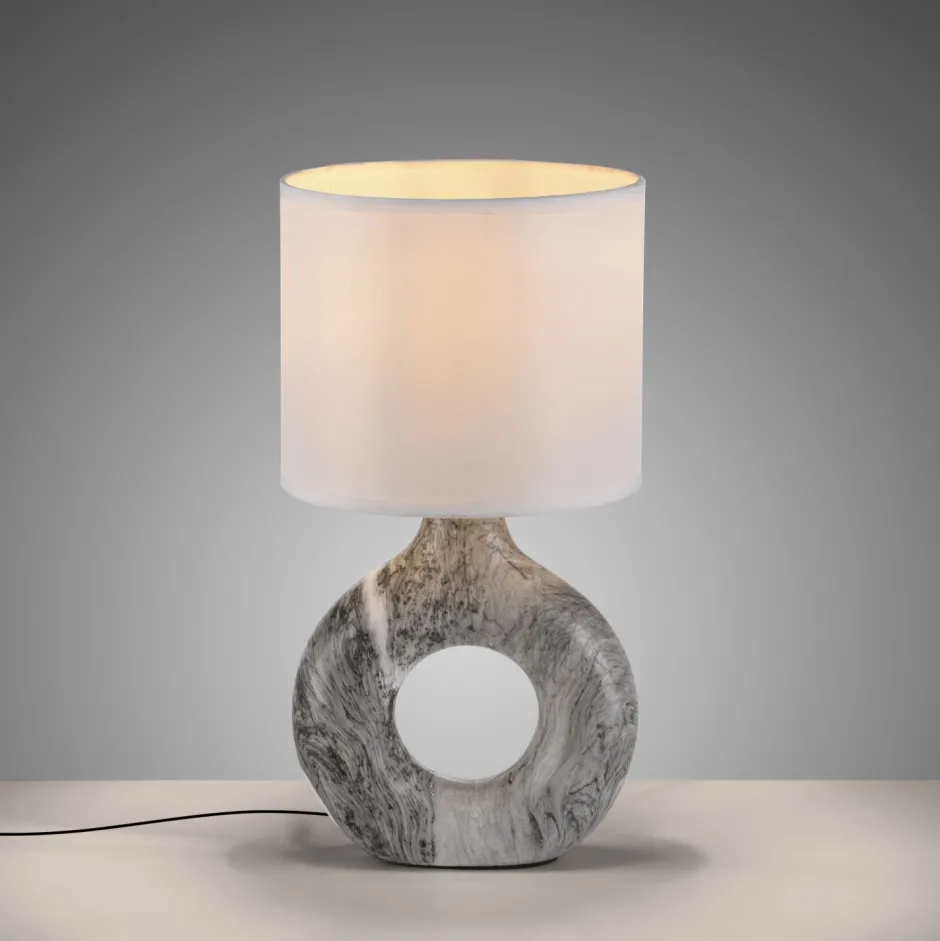 Moderne Tischleuchte aus Keramik und Stoff in Marmor