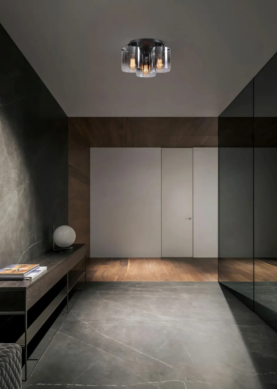 Moderne Deckenleuchte aus Metall und Glas in Schwarz und Rauchgrau