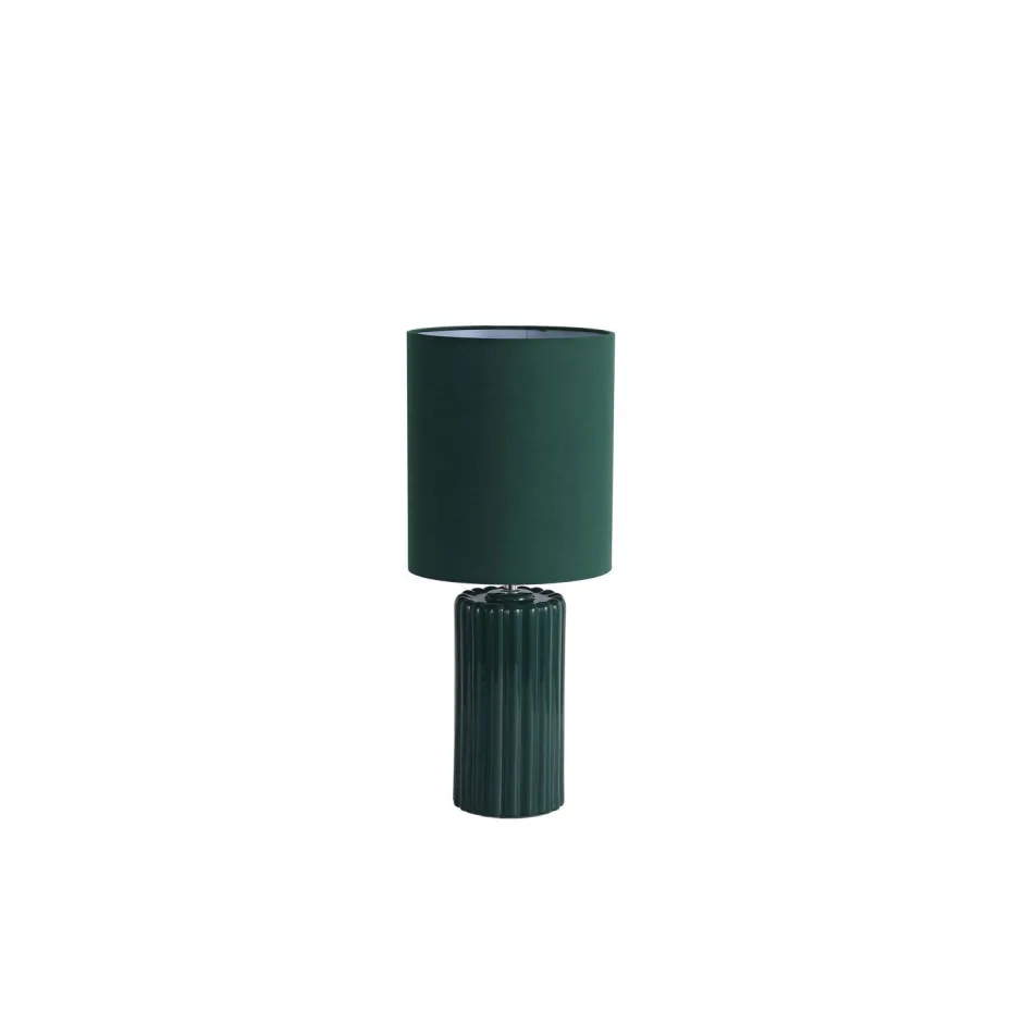 Keramik-Sockel und Stoffschirm in Olivgrün