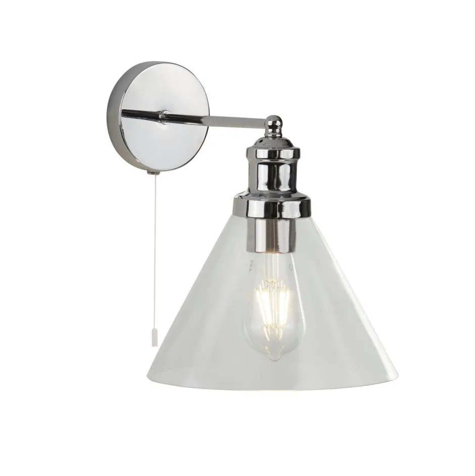 Mit stilvollem Zugschalter direkt an der Wandleuchte zum bequemen Ein- und Ausschalten – ideal für Bad, Küche und Arbeitszimmer