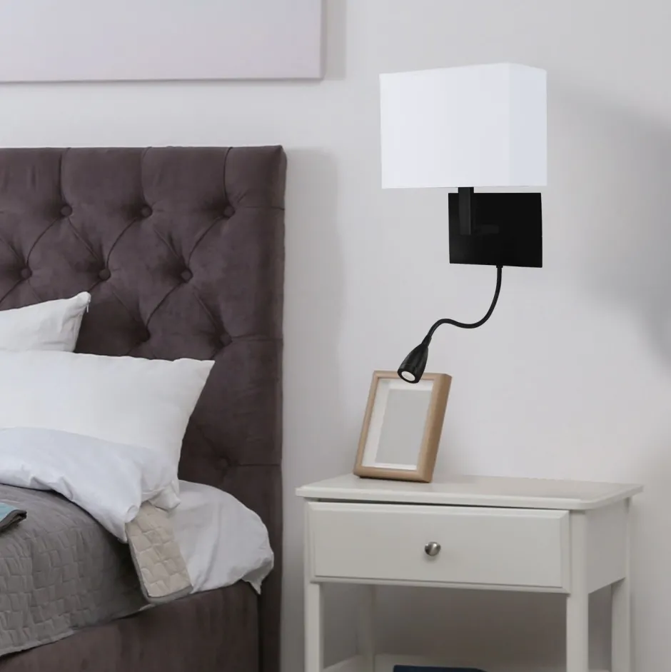 Schlichte Wandlampe mit LED Lesearm in Schwarz und Weiß