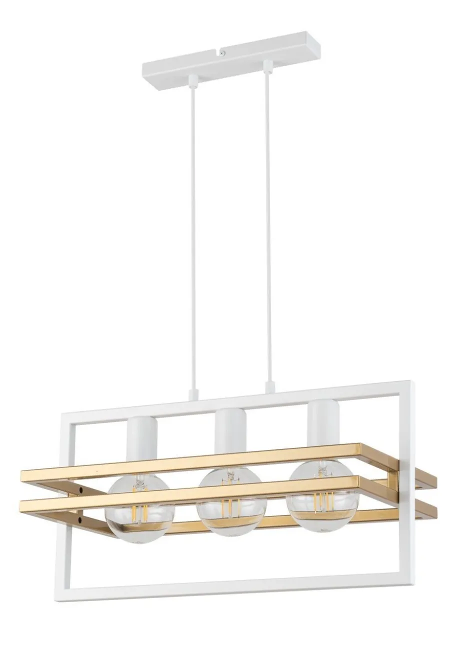 Die von zwei Rahmen in Gold umgebenen Leuchtmittel sind frei sichtbar – diese bestimmen maßgeblich den Look der Leuchte mit