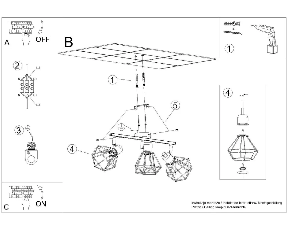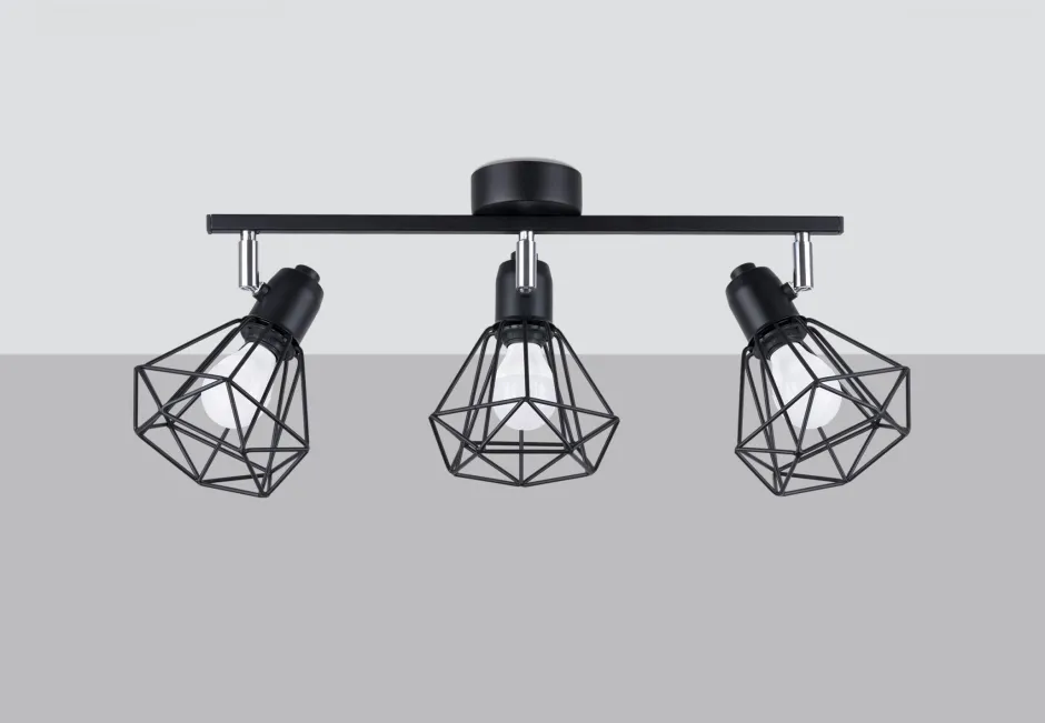 Schwarzer Deckenstrahler mit Draht Schirmen