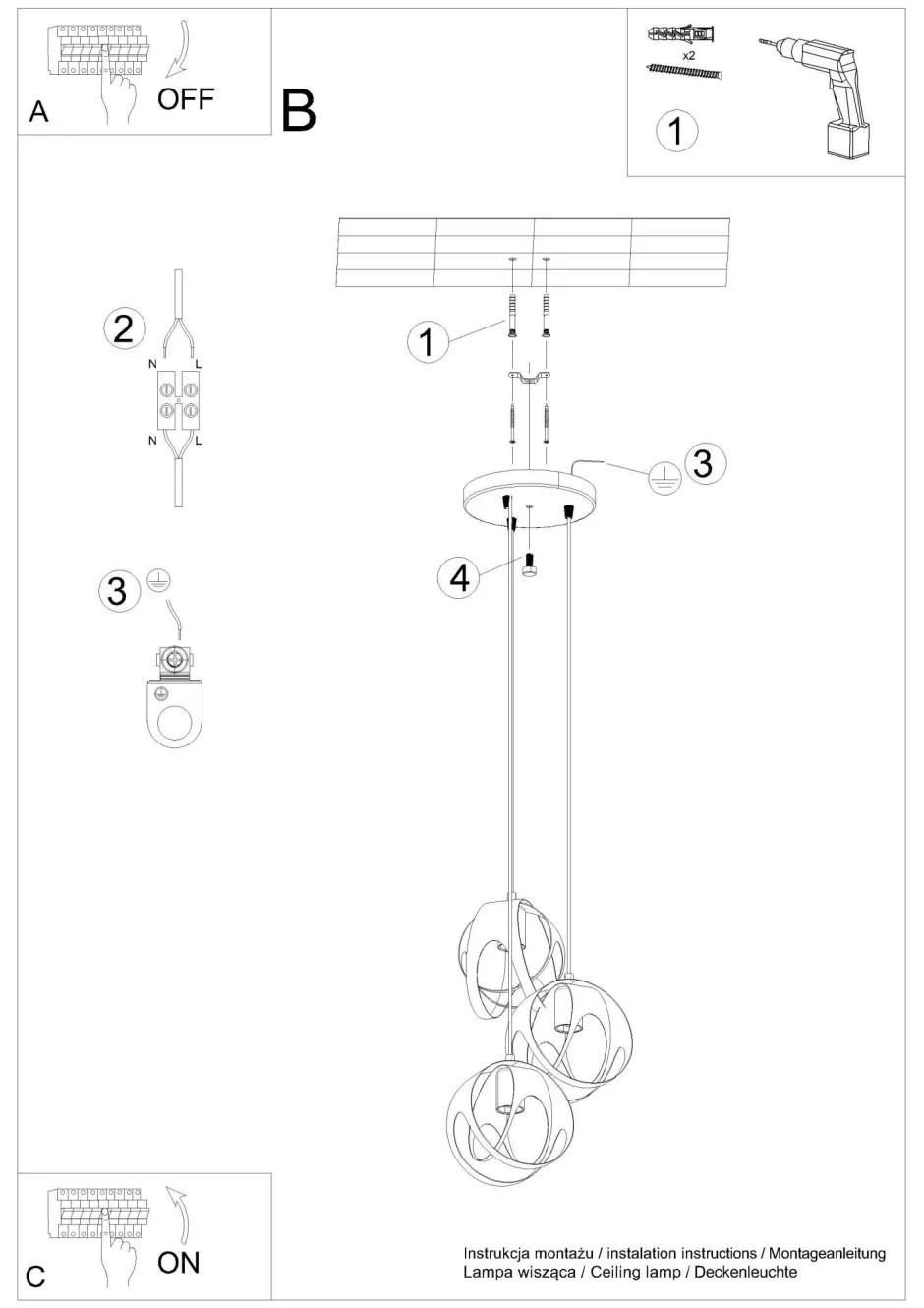 | Fassung: | 3x E27 max. 60W |
