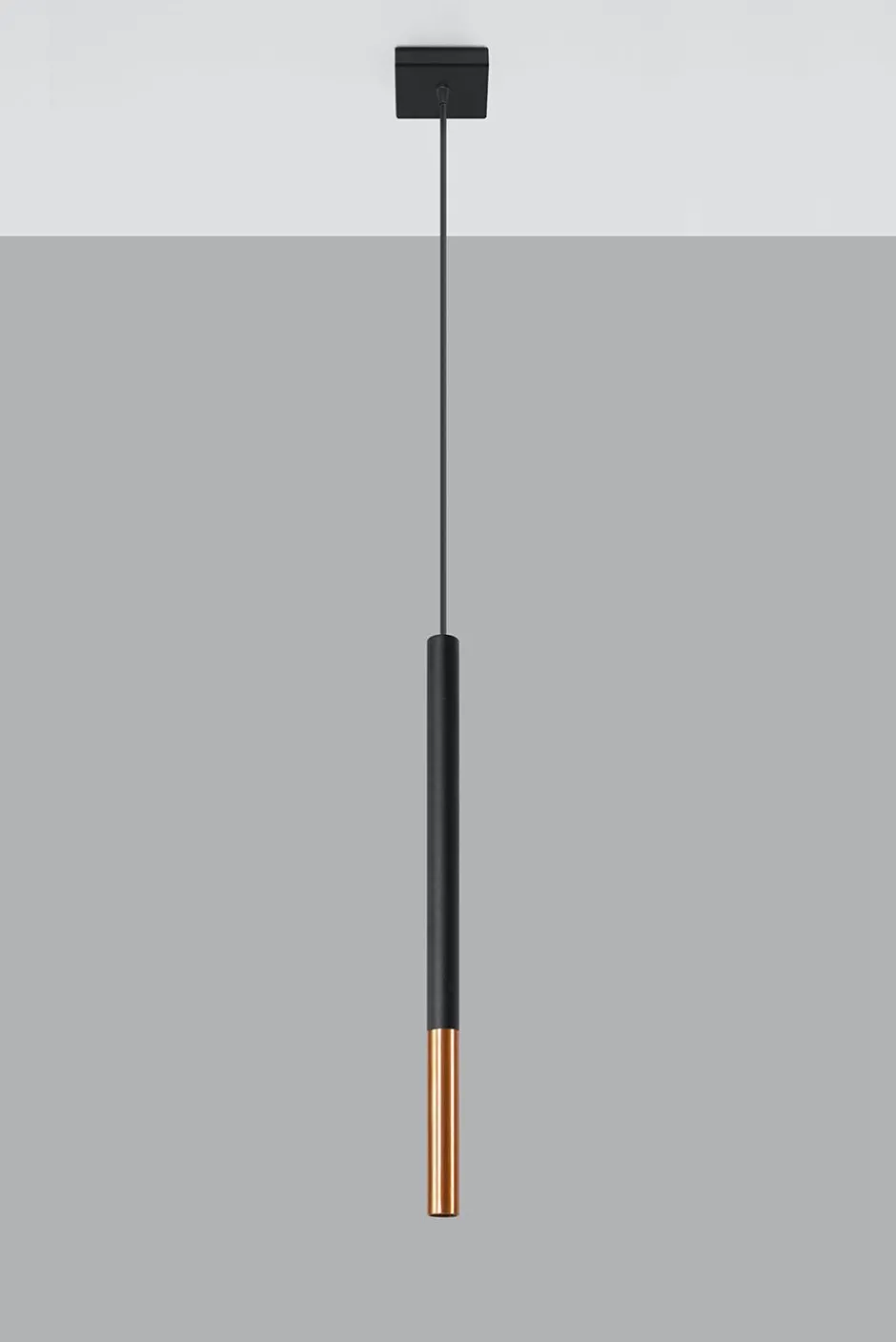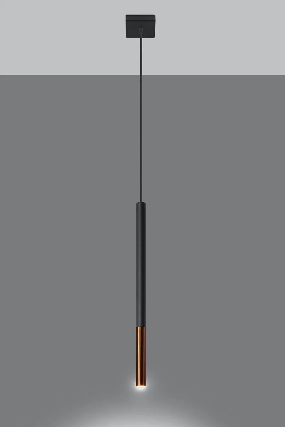 Moderne Pendelleuchte in Schwarz und Kupfer