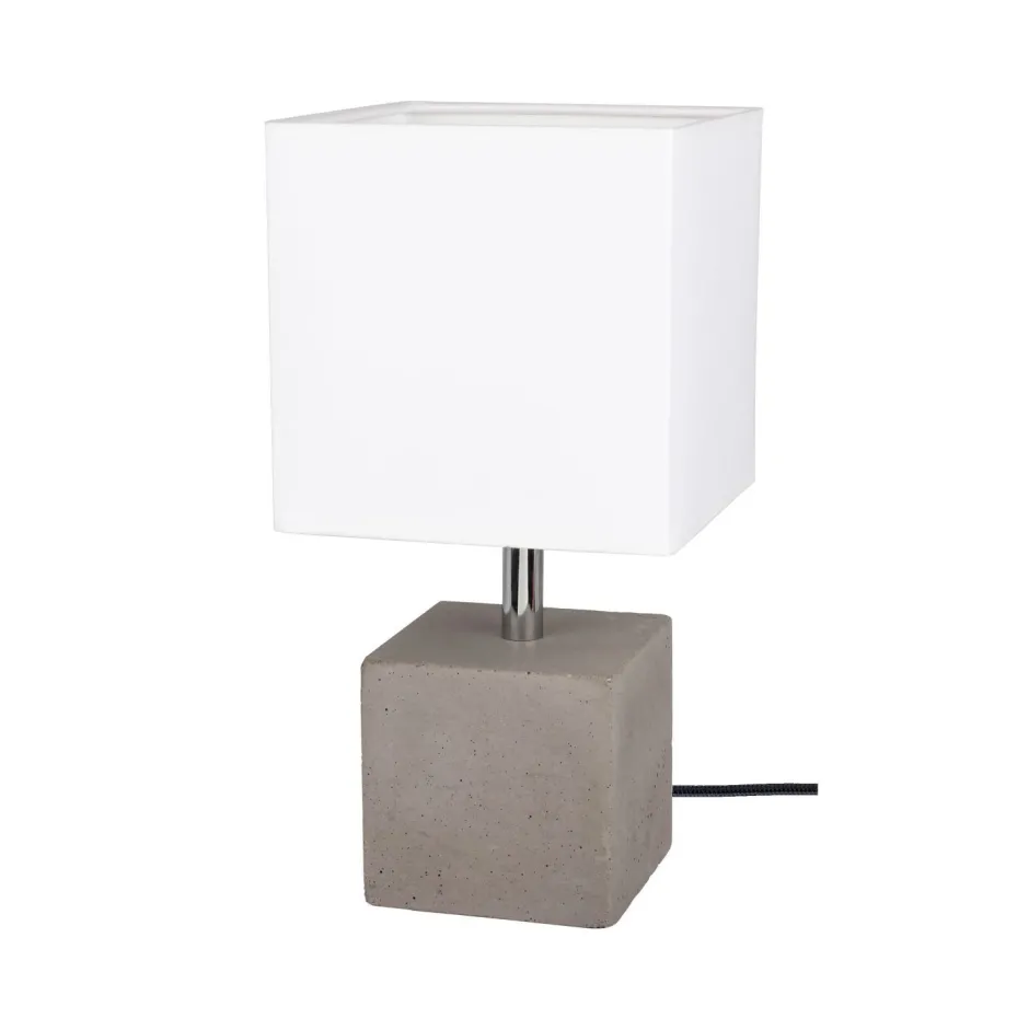 Moderne Tischlampe aus Beton und Stoff in Grau und Schwarz