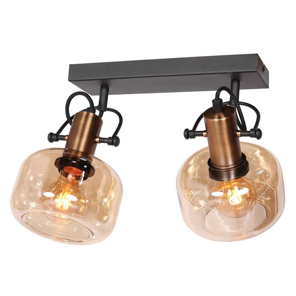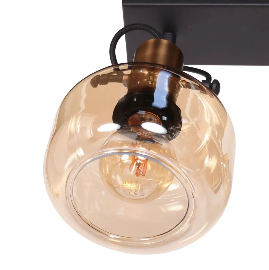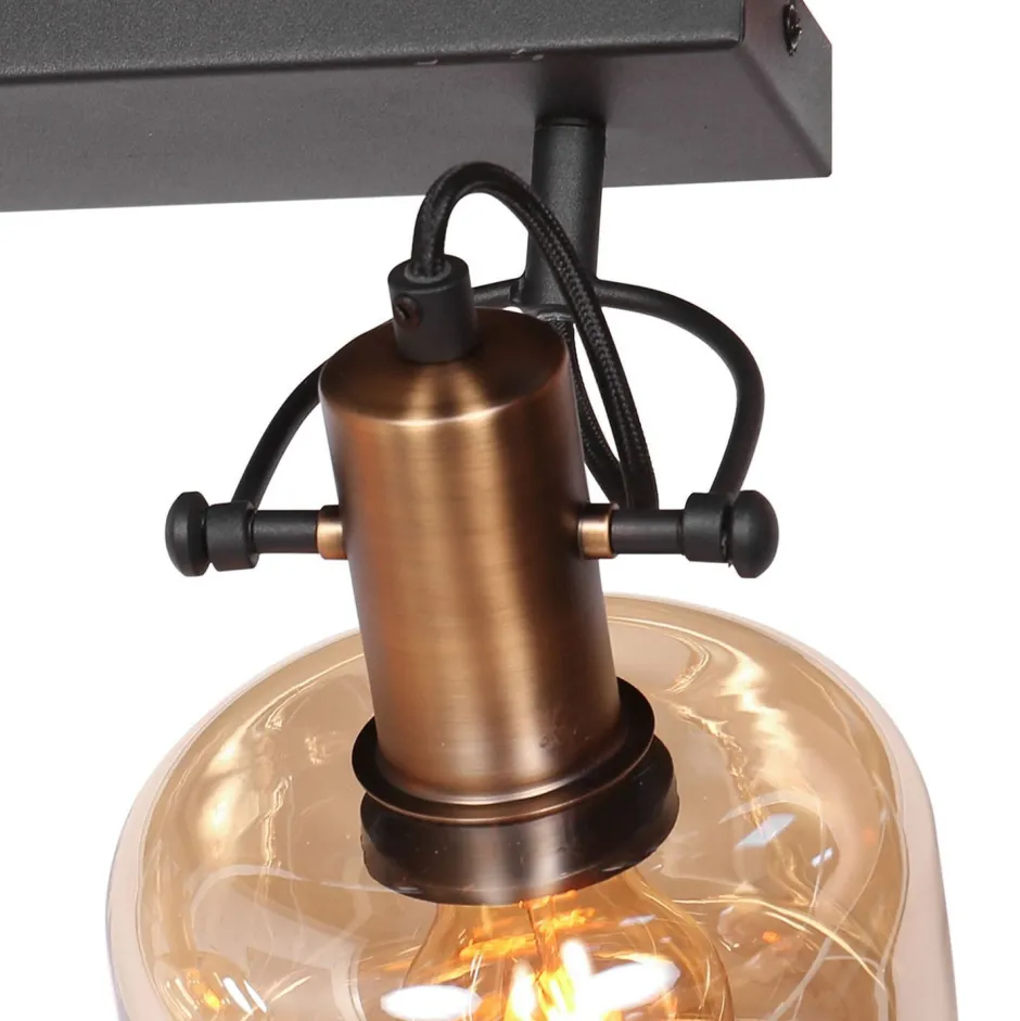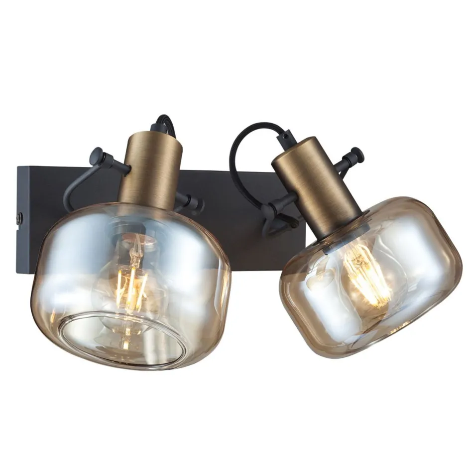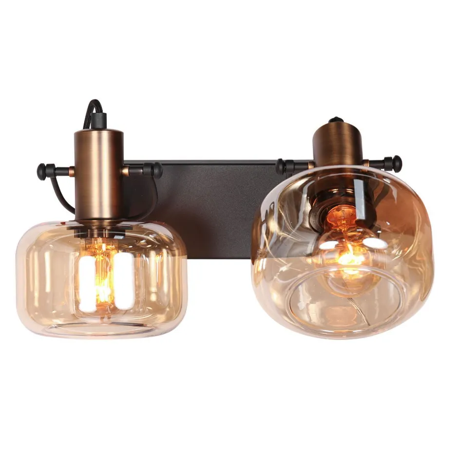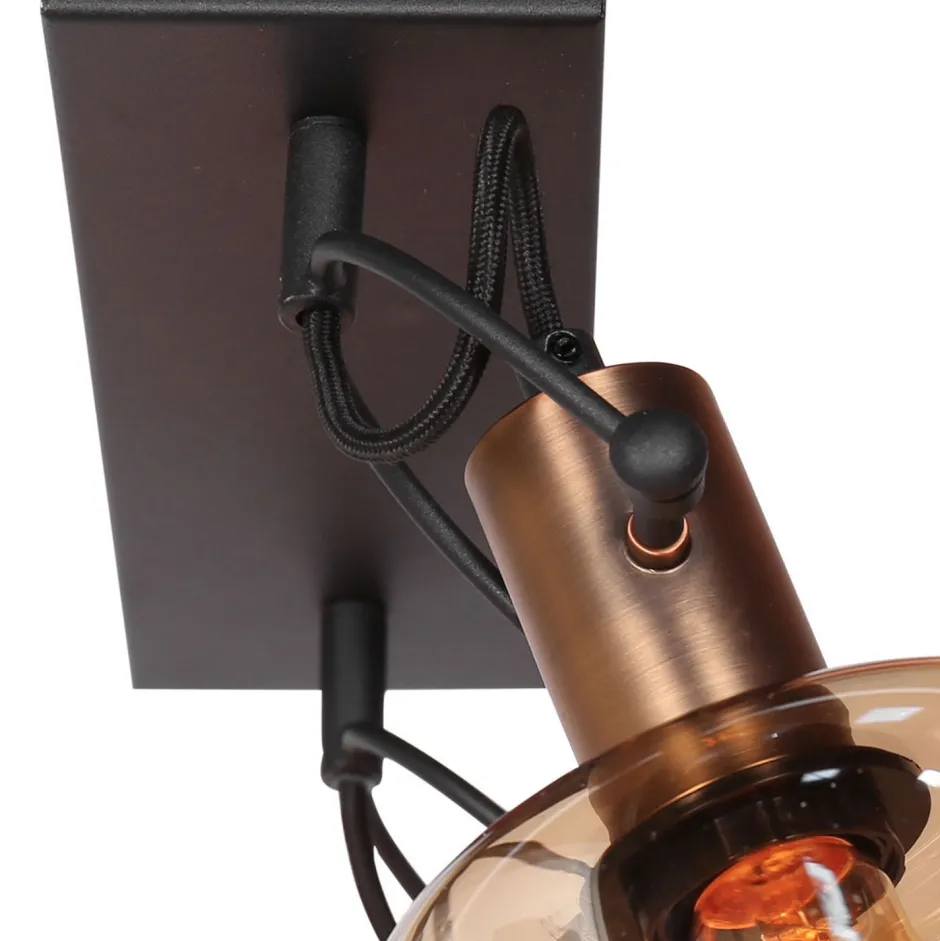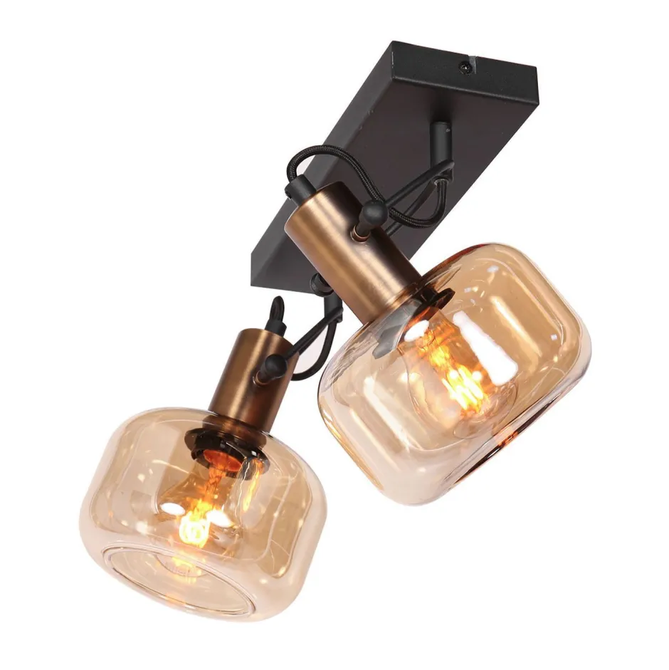Moderner Wandspot aus Metall und Glas in Schwarz und Bernstein