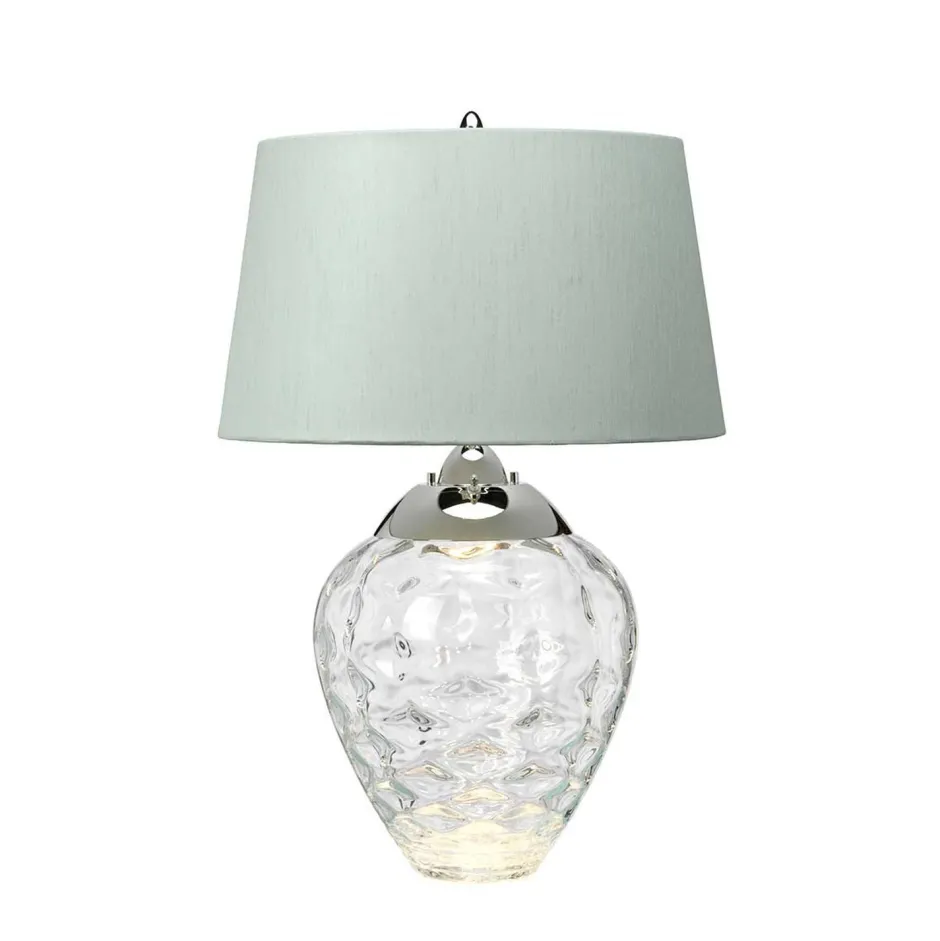 Stilvolle Tischleuchte mit beleuchtetem Sockel aus klarem Glas