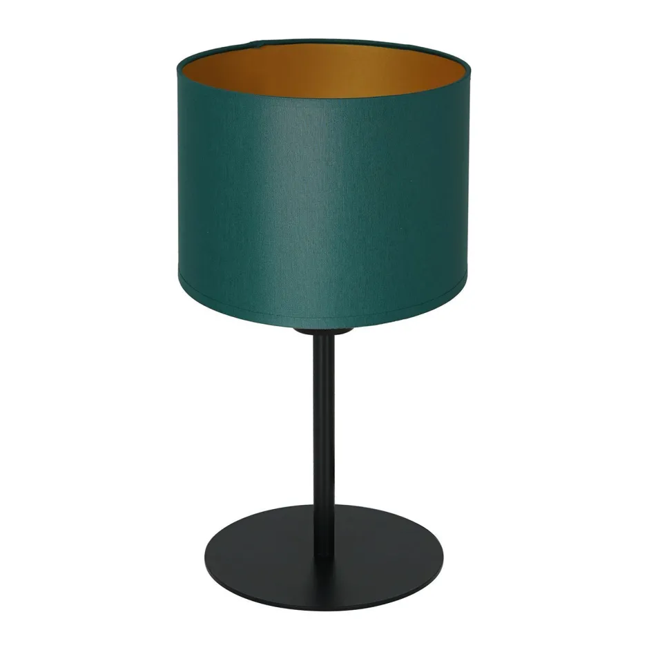 Zeitlose Tischlampe aus lackiertem Stahl, Stoff und Kunststoff in Petrol und Gold