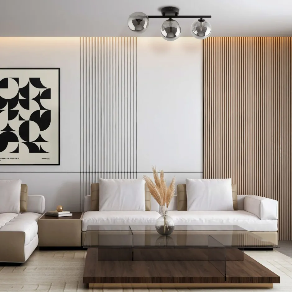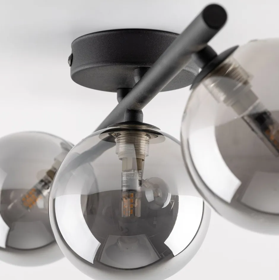 Elegante Deckenlampe mit Kugelschirmen aus Rauchglas