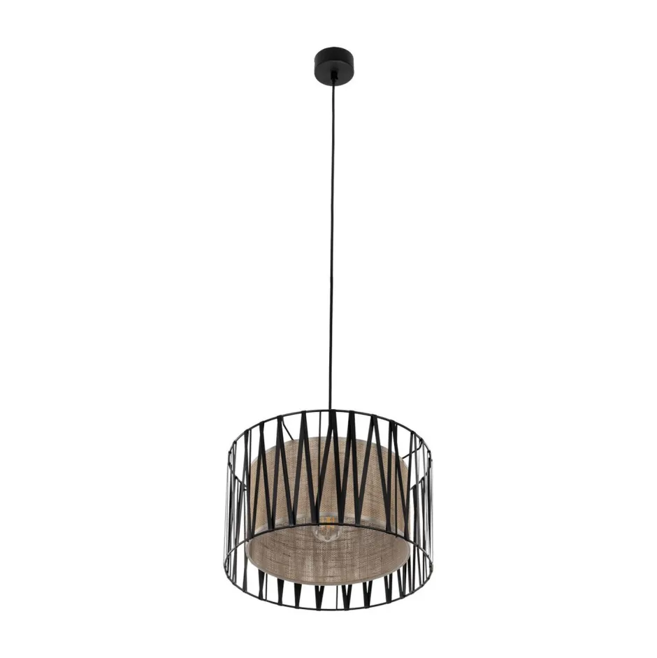 Das Licht wird durch den Schirm aus Jute blendarm gestreut und sorgt für eine angenehme Beleuchtung