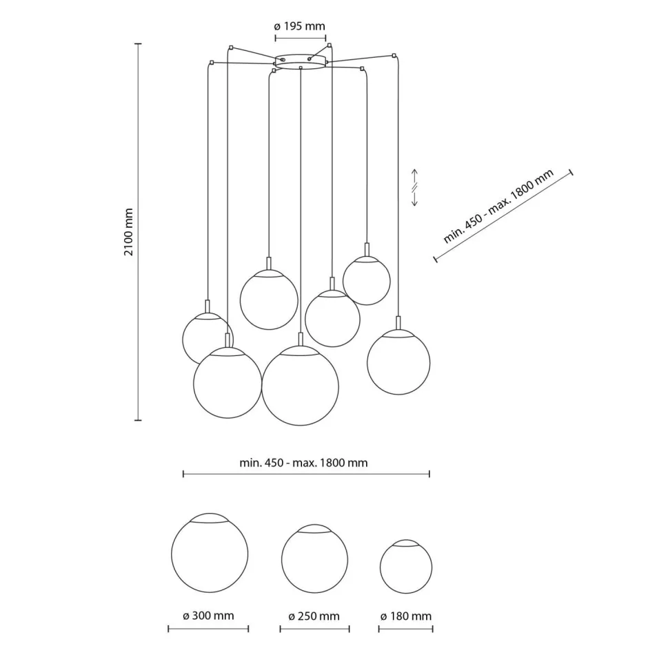 Die unterschiedlichen Kugelschirme sorgen für einen außergewöhnlichen Look, der die Hängelampe zu einem dekorativen Blickfang macht