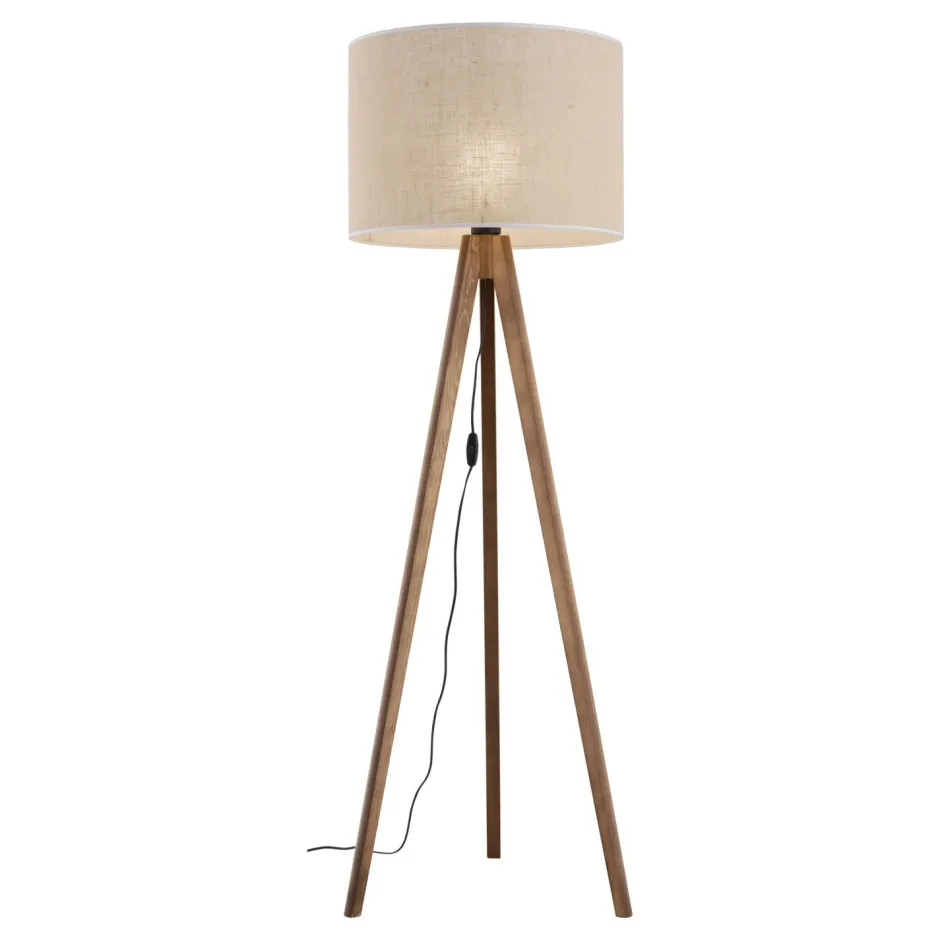 Das Dreibein Gestell aus Holz verleiht der Stehleuchte ein wohnliches Flair und passt perfekt neben das Sofa