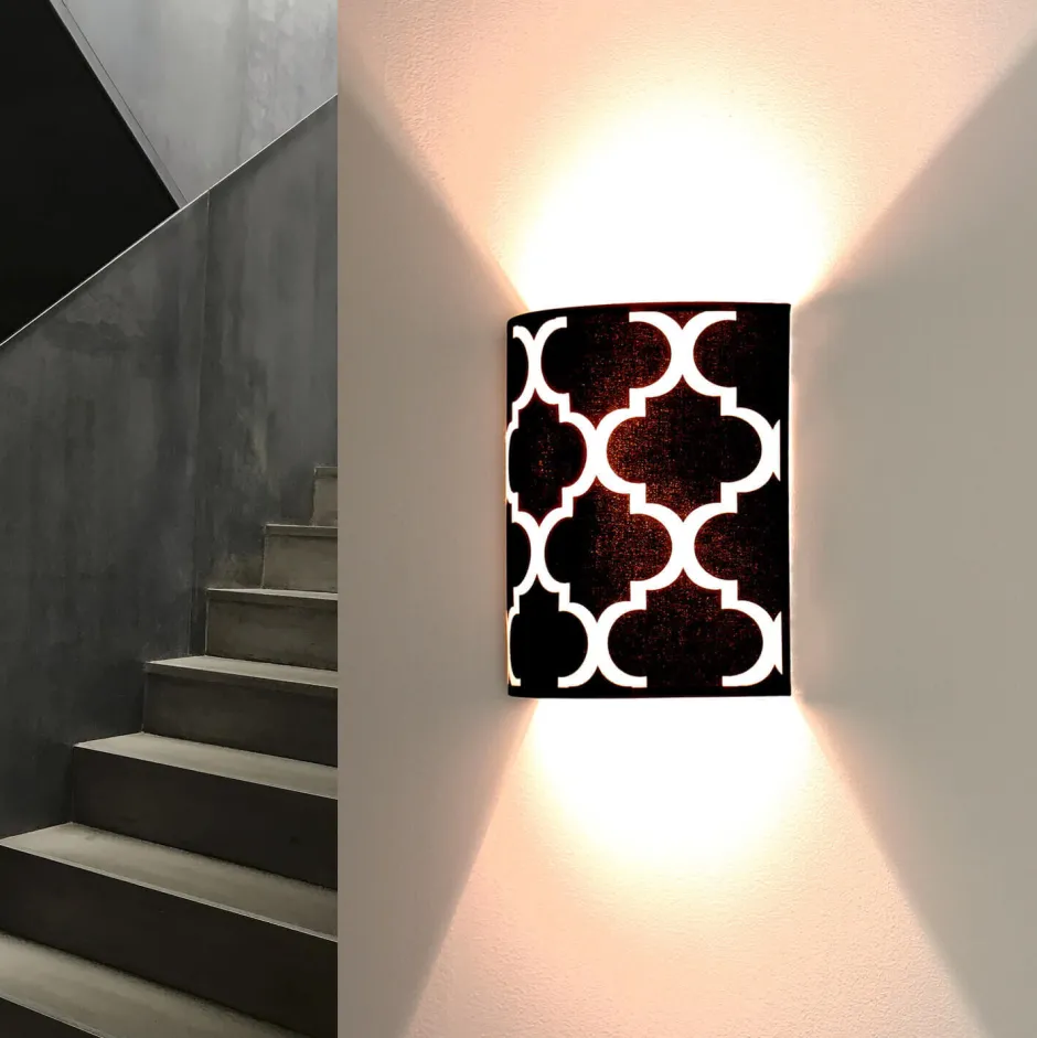 Freie Leuchtmittelwahl: Helligkeit und Lichtfarbe können durch LED-Leuchtmittel variiert und auf jeden Raum abgestimmt werden | nicht inklusive Entdecke die charmante Retro Wandlampe, die mit ihrem halbrunden Stoff Lampenschirm in Schwarz-Weiß einen Hauch von Nostalgie in dein Zuhause bringt. Diese stilvolle Wandleuchte ist nicht nur ein Blickfang, sondern auch ein funktionales Lichtobjekt, das sich perfekt für Schlafzimmer, Wohnzimmer und Flure eignet. Mit ihrem einzigartigen Arabesque Muster, das an die 60er und 70er Jahre erinnert, setzt sie dekorative Akzente und verleiht jedem Raum eine besondere Atmosphäre. Die Retro Wandlampe strahlt ihr Licht sowohl nach oben als auch nach unten aus, was eine großzügige, indirekte Beleuchtung ermöglicht. So schaffst du eine einladende Lichtstimmung, die zum Verweilen einlädt. Besonders praktisch ist die Möglichkeit, die Helligkeit und Lichtfarbe durch die Wahl der LED-Leuchtmittel individuell anzupassen. Damit kannst du die perfekte Atmosphäre für jeden Anlass kreieren – sei es ein gemütlicher Abend im Wohnzimmer oder ein stilvolles Dinner in der Küche. Dank ihrer kompakten Größe ist diese Wandleuchte ideal für kleine Räume und schmale Gänge. Sie fügt sich harmonisch in jede Einrichtung ein und ist die perfekte Lösung für alle, die Wert auf Qualität und Design legen, ohne dabei das Budget aus den Augen zu verlieren. Setze mit der Retro Wandlampe in Schwarz-Weiß auf zeitloses Design und funktionale Eleganz. Lass dich von der Kombination aus Stil und Funktionalität inspirieren und bringe ein Stück Retro-Charme in dein Zuhause!