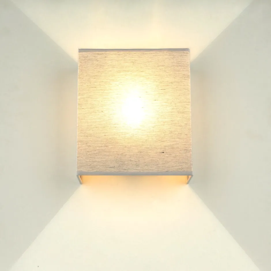Moderne Loft Wandlampe mit eckigem Stoff Lampenschirm