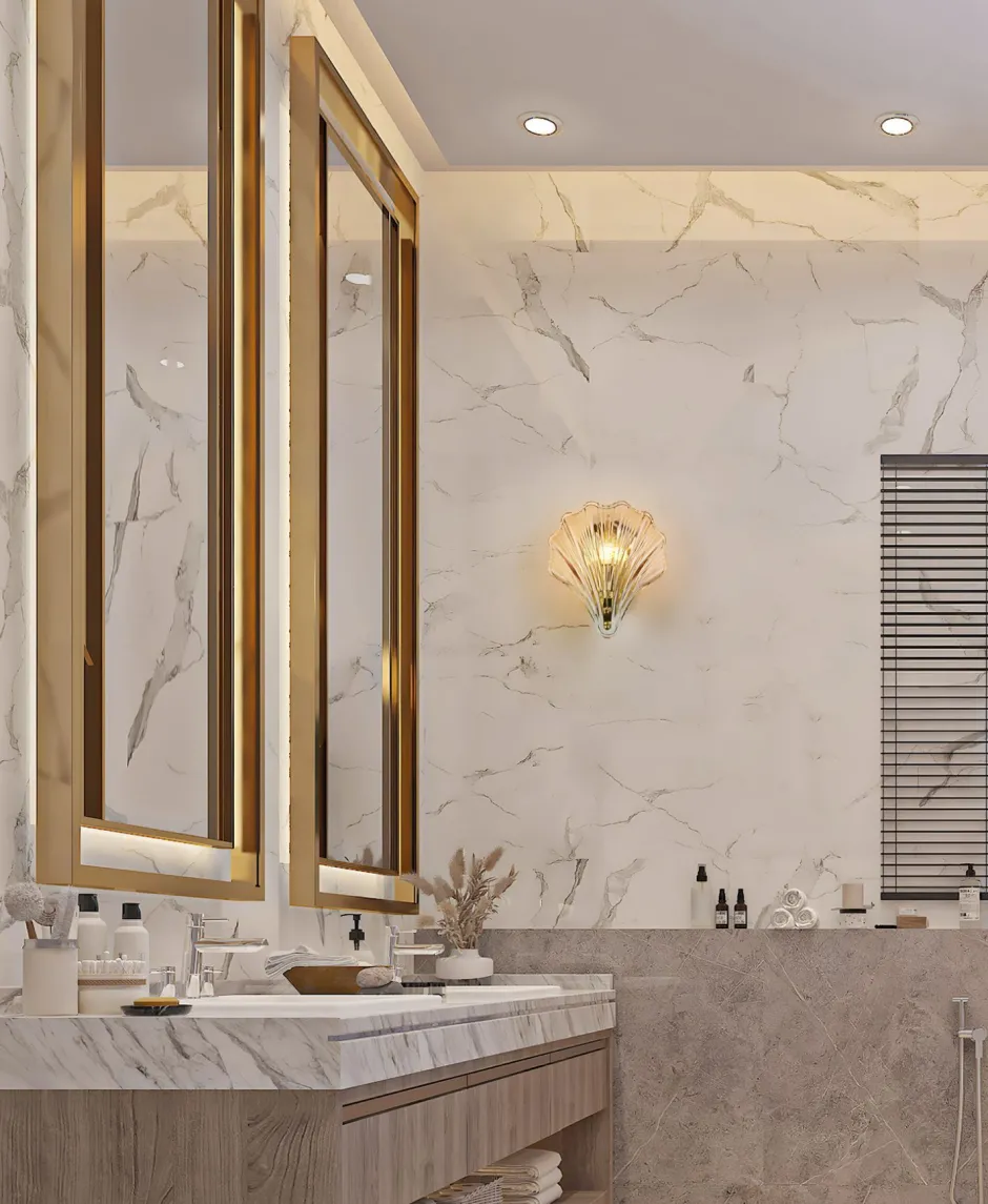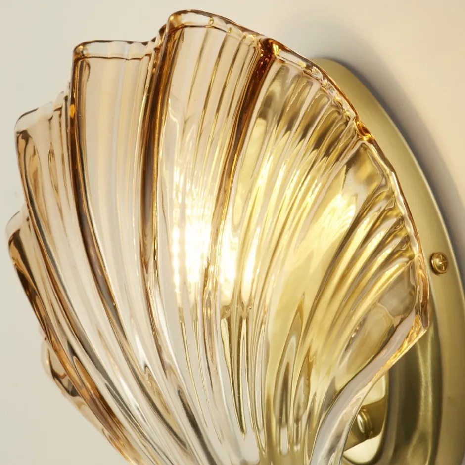 Moderne Wandleuchte aus Stahl und Glas in Messing