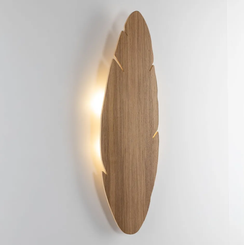 Wohnliche Wandlampe aus Holz im Blatt Design