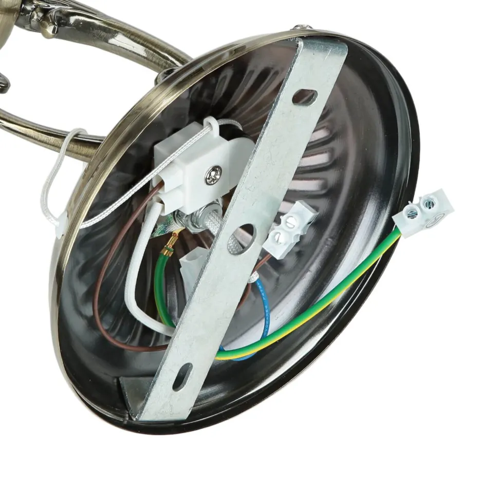 Die Leuchte ist stilecht aus Metall in Bronze und weißem Alabaster Glas