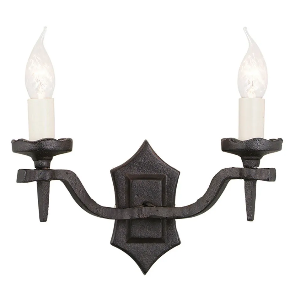 Rustikale Wandleuchte im mittelalterlichen Design aus Schmiedeeisen