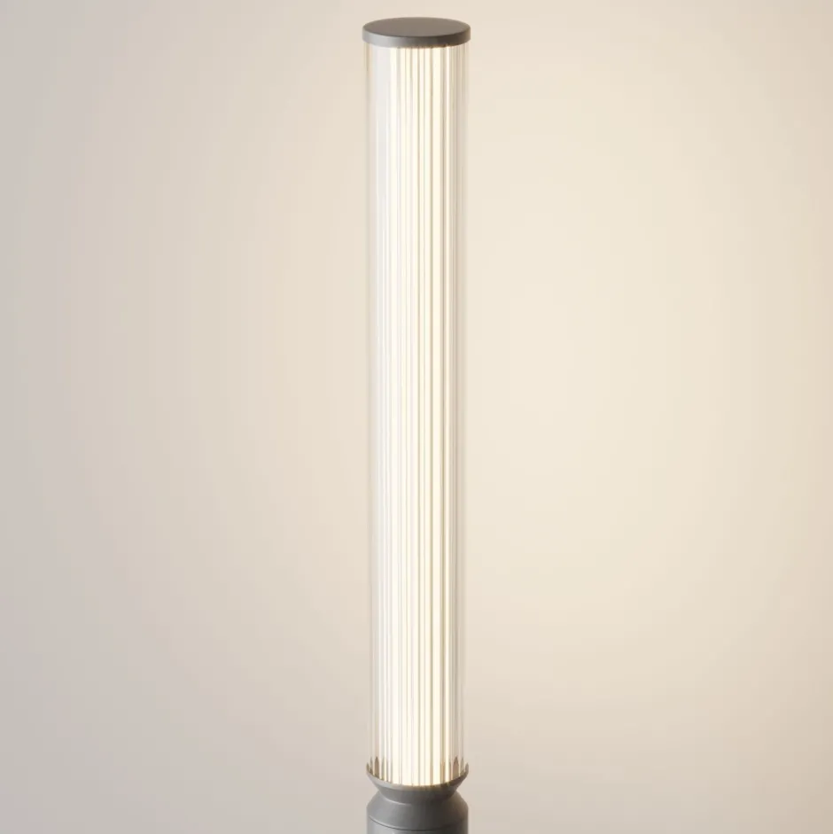 Dank ihrer imposanten Größe von fast 2 Metern ist die Stehlampe ein außergewöhnlicher Blickfang, der auch Bürogebäude, Behörden und öffentliche Parkplätze perfekt erleuchtet