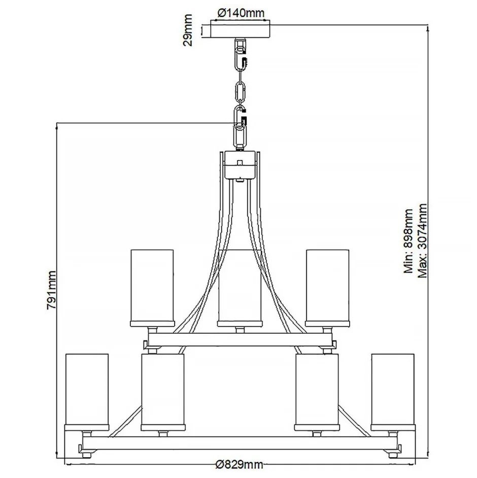 | Maße: | Breite: 829 mm | Hängetiefe: 898-3074 mm | Länge: 829 mm | Durchmesser: 829 mm | Höhe Schirm: 791 mm |