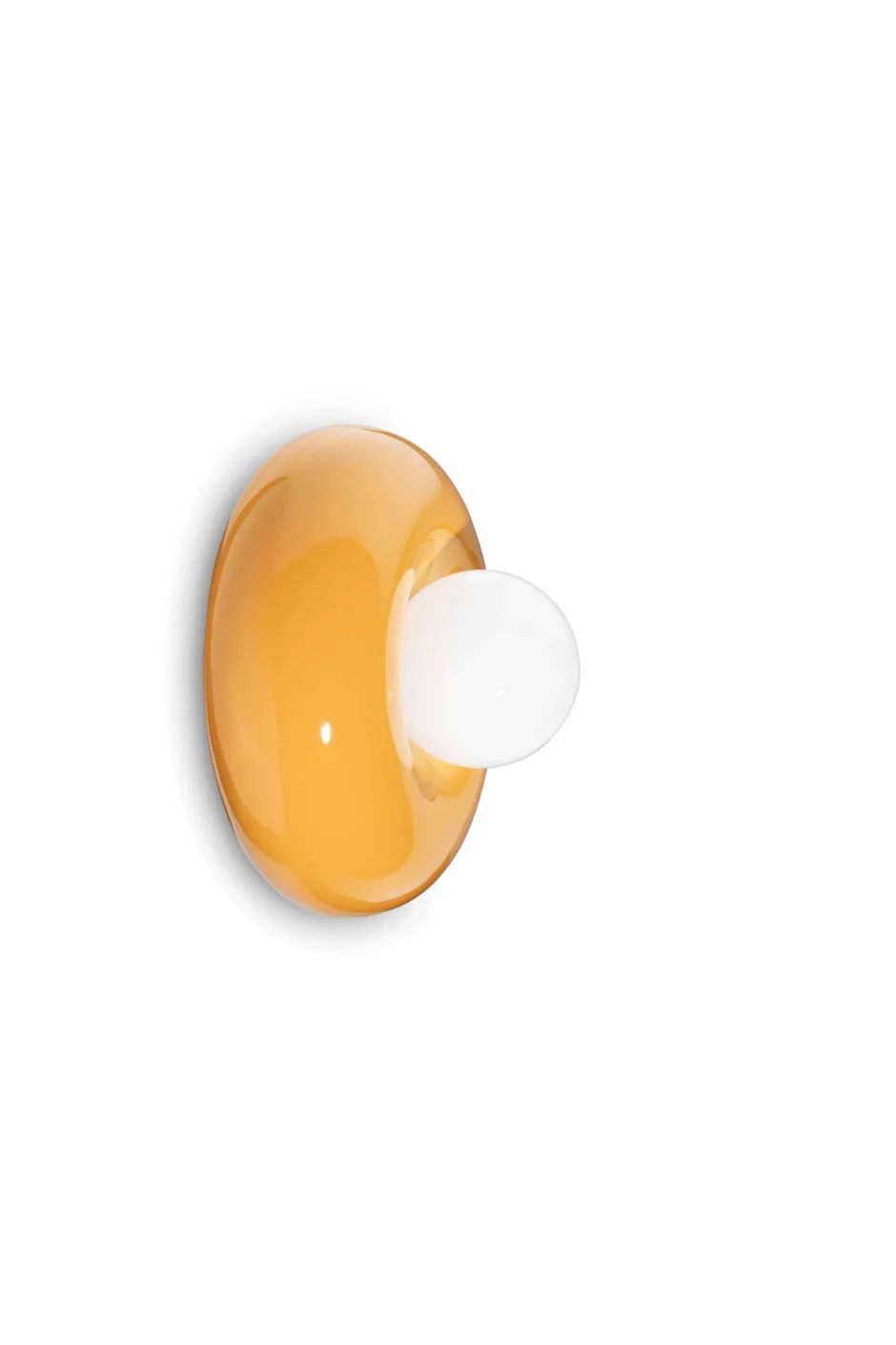 Knallige Retro Wandlampe aus massiver Keramik und satiniertem Glas in Gelb