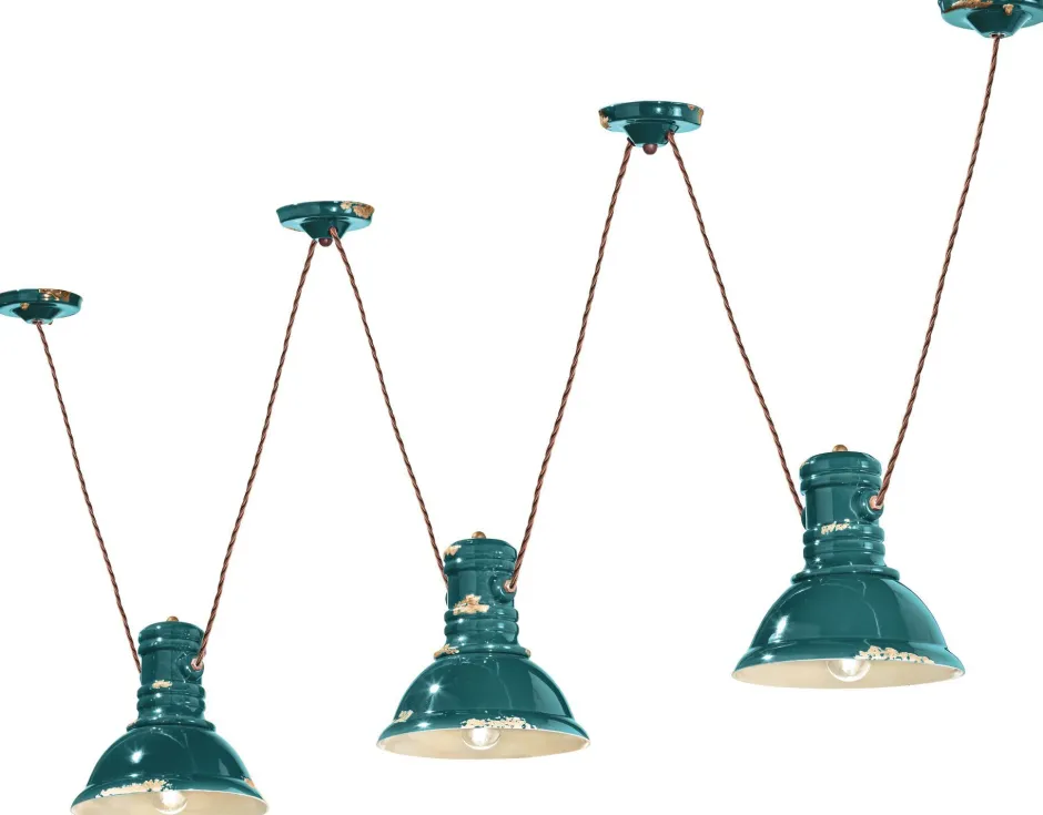 Flexibel verstellbare Pendelleuchte mit Keramik Lampenschirm in Petrol