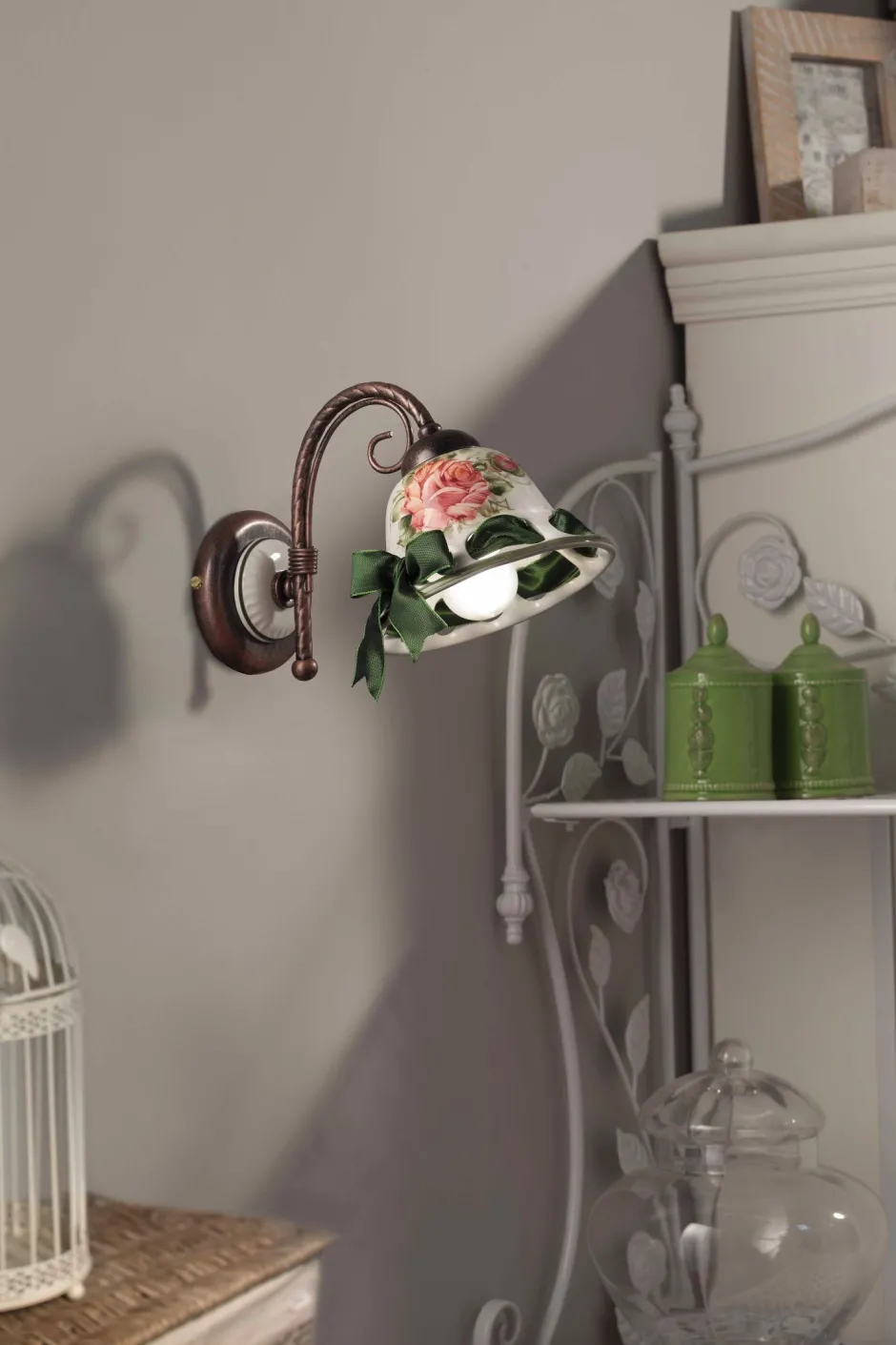 Romantische Wandleuchte mit verspieltem Keramik Lampenschirm