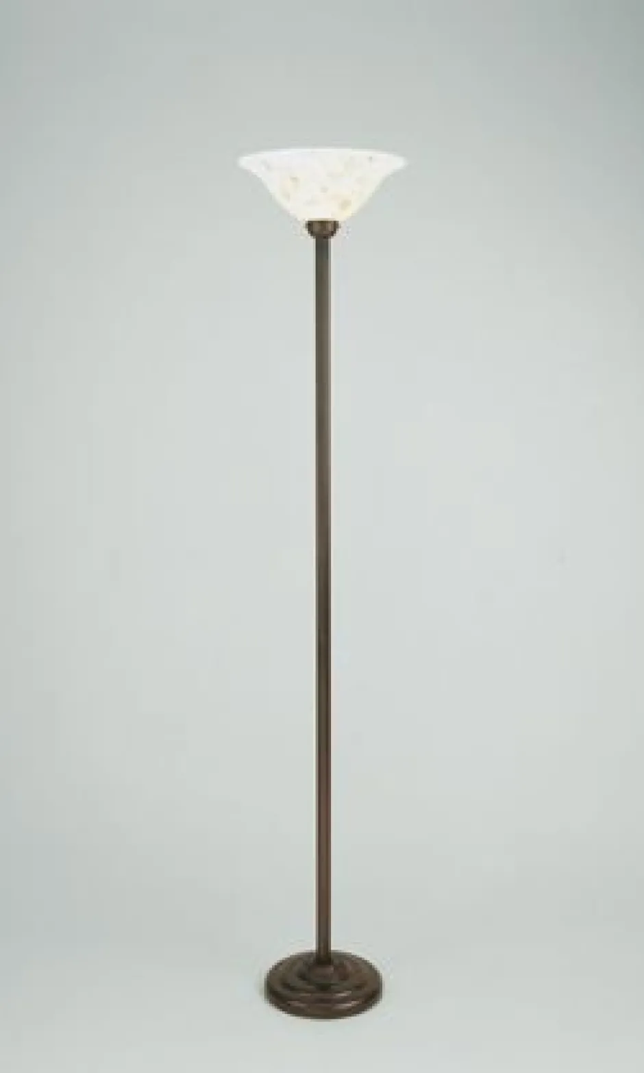 Der geweißte Glasschirm streut das Licht blendarm für ein gemütliches Ambientelicht neben der Couch im Wohnzimmer