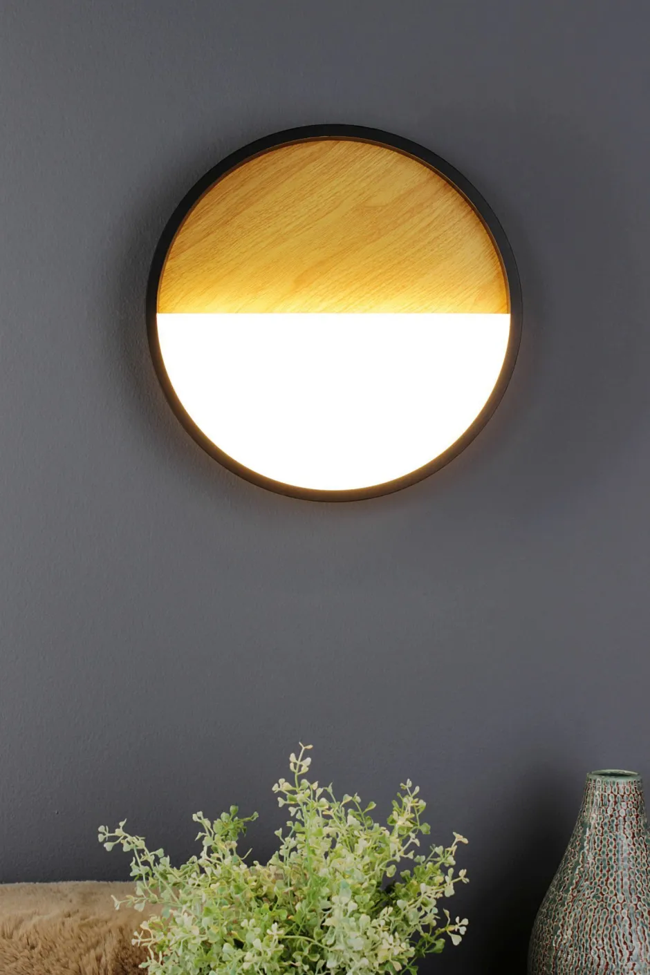 Moderne LED Deckenleuchte aus Aluminium in Schwarz und Natur