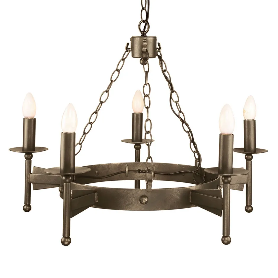 Das rustikale Design erinnert an historische Lüster aus Burgen und Schlössern des Dunklen Zeitalters, was in jedem Raum zu einem dekorativen Blickfang wird