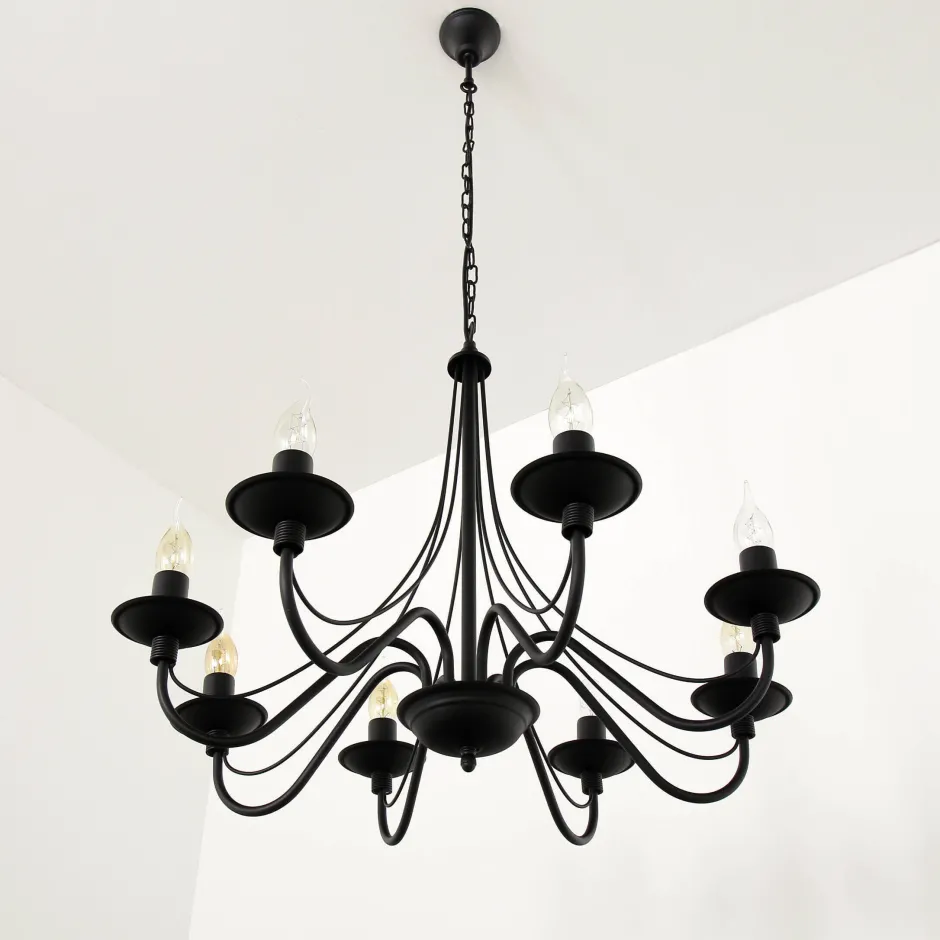 Geschwungener 8-armiger Lüster, der in jedem Wohnzimmer oder Esszimmer zu einem echten Blickfang wird