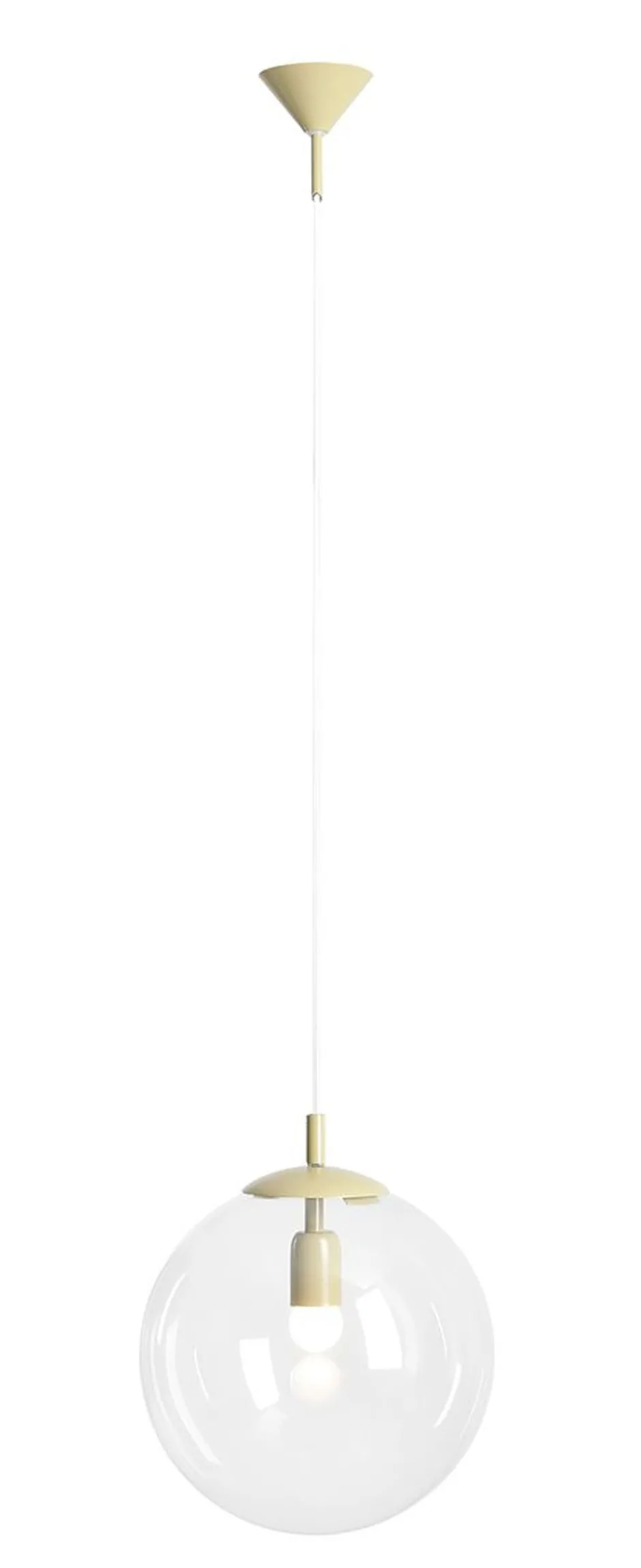 Der klare Glas-Schirm der Hängelampe im Kugel Design sorgt für einladendes, breitgestreutes Licht – perfekt als auffälliges Highlight im Wohnzimmer und Esszimmer über dem Esstisch