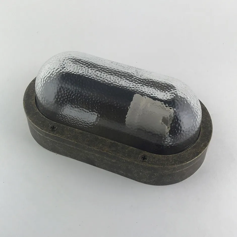 Maritime Außenwandleuchte aus massivem Messing und kunstvollem Riffelglas in verwittertem Messing: ideal als Haustür Lampe, Terrassenbeleuchtung, Balkon Lampe, Carport Beleuchtung und Garagenlampe
