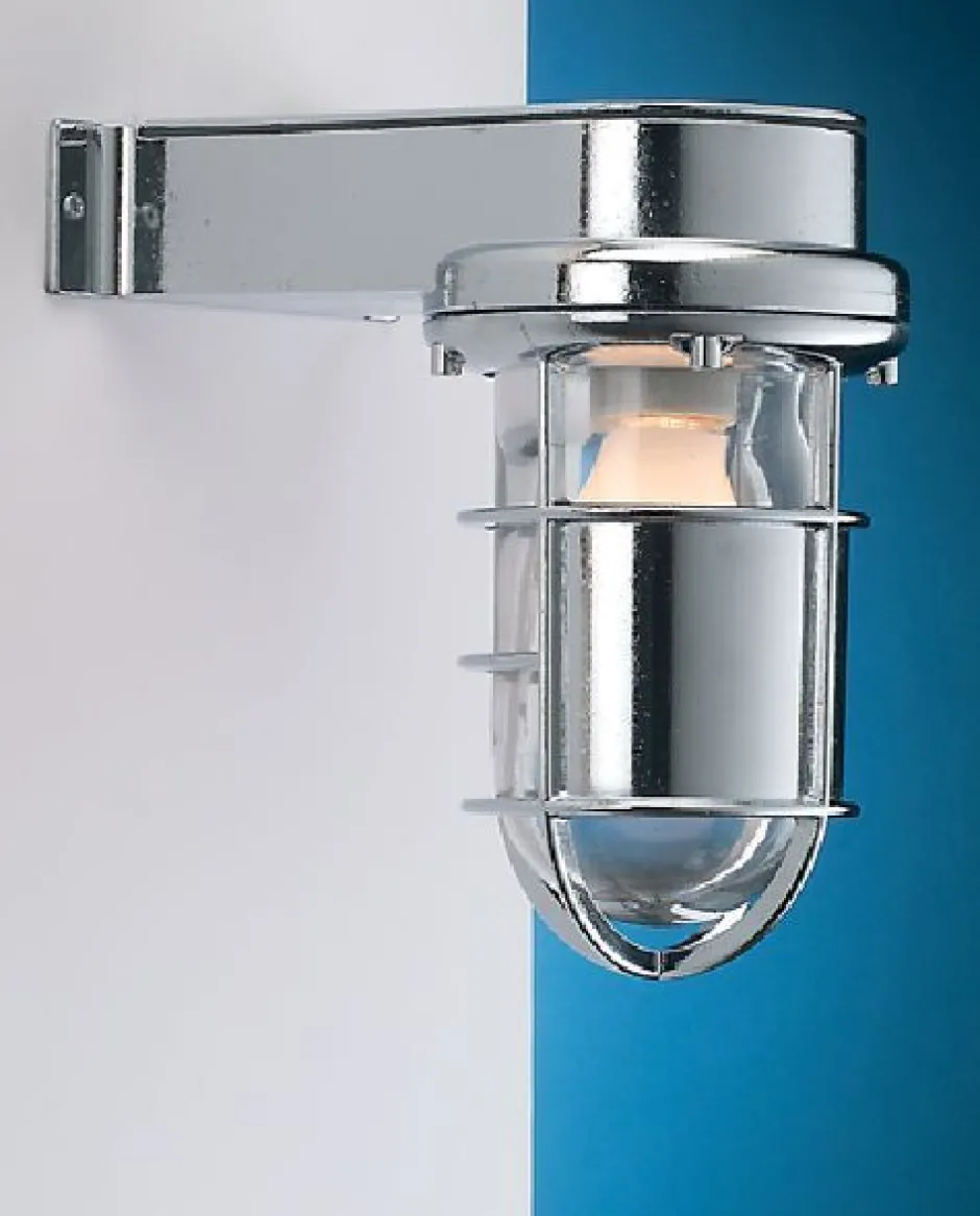Edle Außenwandleuchte aus robustem Messing und Glas in glänzendem Chrom