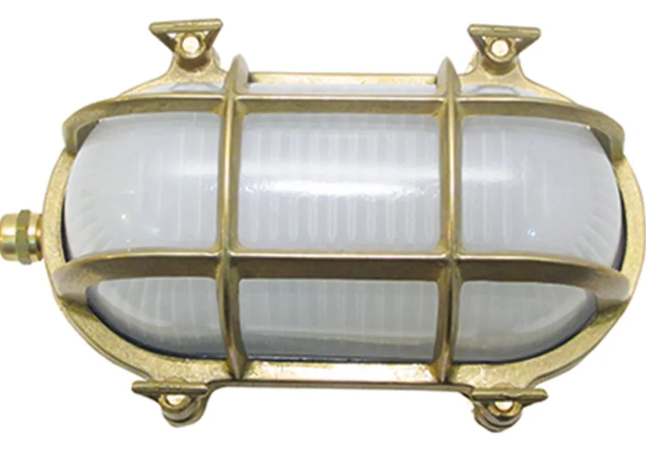 Maritime Außenwandlampe aus massivem Messing im Stil eines antiken Bullauges