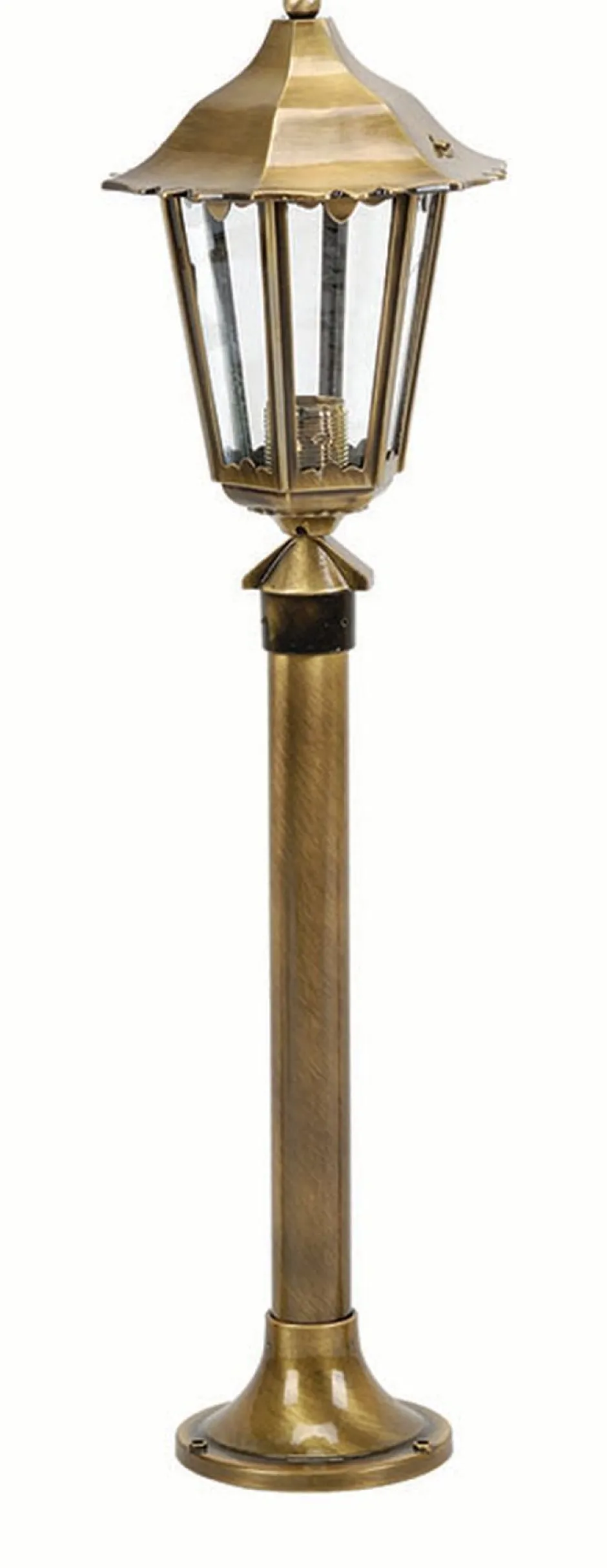 Rustikale Wegeleuchte aus massivem Messing und robustem Acrylglas