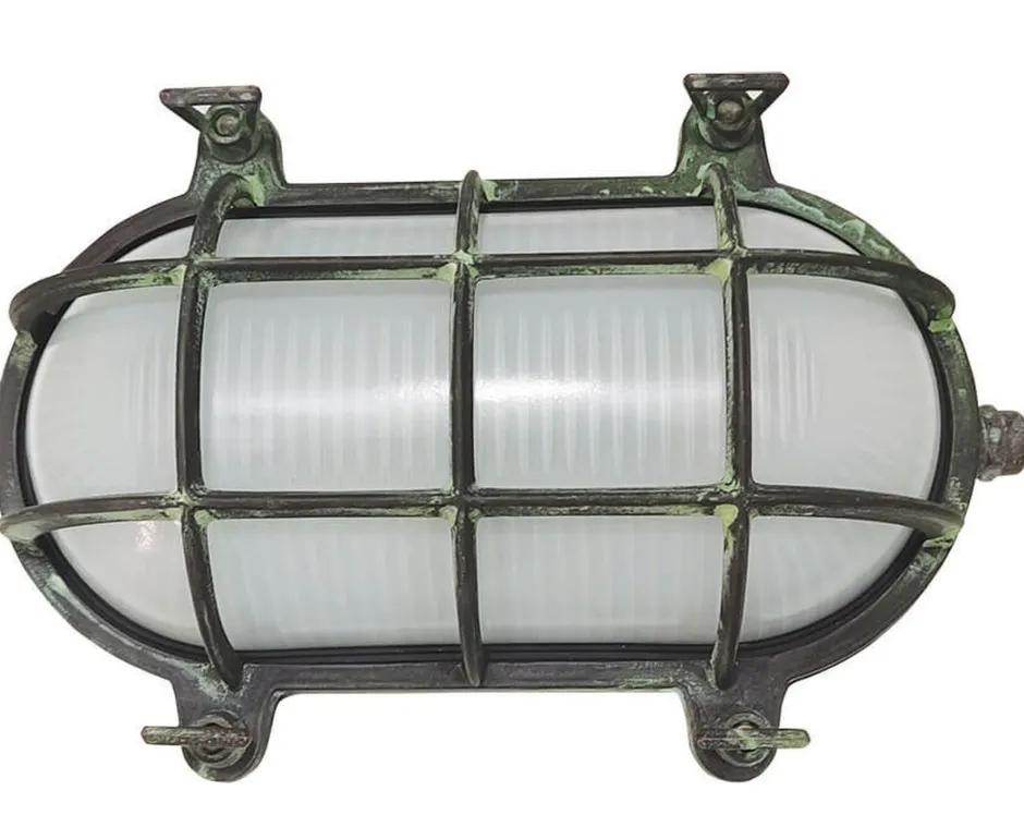 Maritime Außenwandlampe aus massivem Messing im Stil eines antiken Bullauges