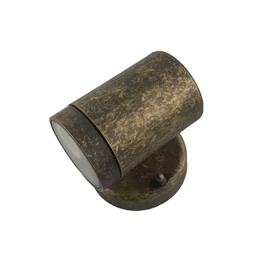 Schmale Outdoor Wandleuchte aus massivem Messing und Glas in verwittertem Messing im nostalgischen Vintage Design für Garten, Terrasse, Balkon, Haus und Hof