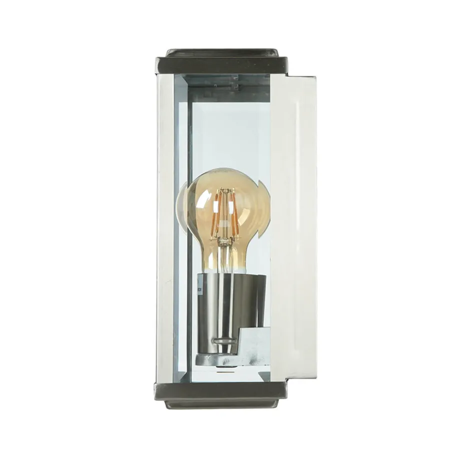 Außenwandleuchten|Metall Lampen*Searchlight Moderne eckige Außenwandleuchte E27 Silber satiniert