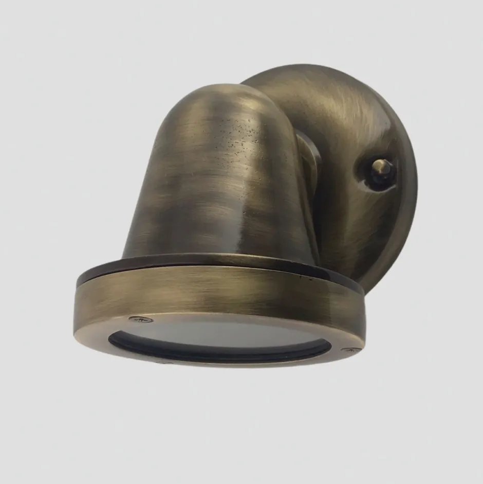 Schmale Outdoor Wandleuchte aus massivem Messing und Glas in Antik im nostalgischen Vintage Design für Garten, Terrasse, Balkon, Haus und Hof