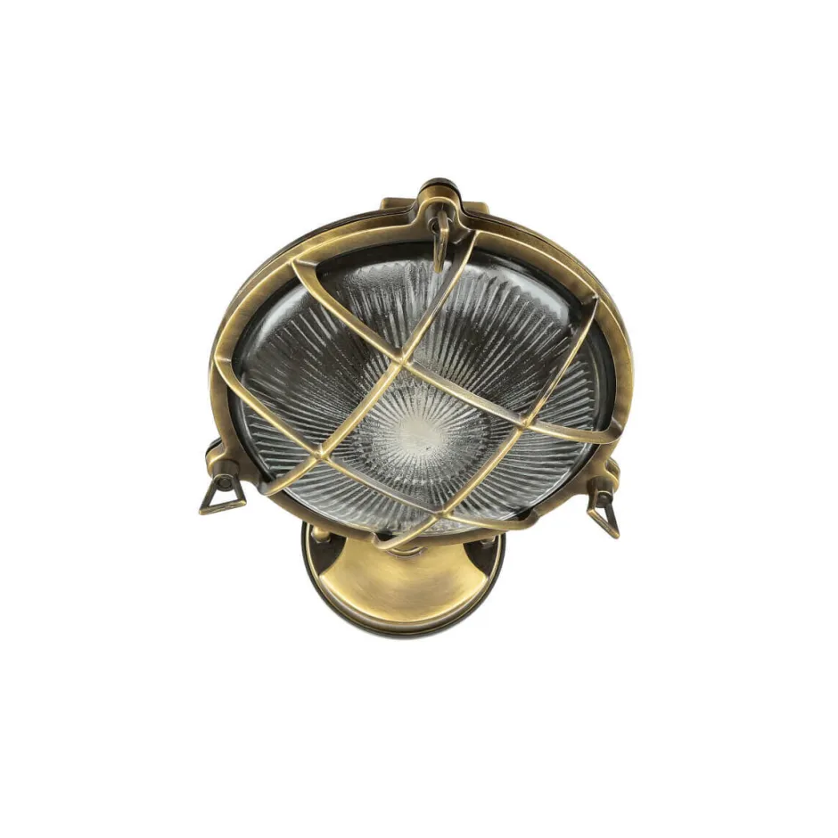 Maritime Außenwandlampe aus massivem Messing im Stil eines antiken Bullauges