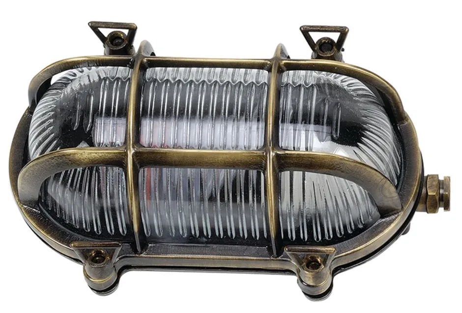 Maritime Außenwandlampe aus massivem Messing im Stil eines antiken Bullauges