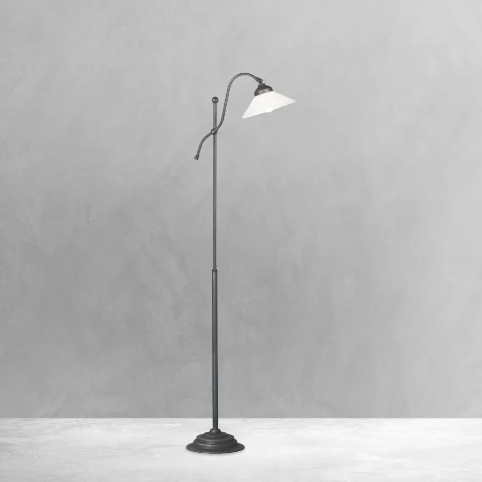 Rustikale Stehleuchte für das Wohnzimmer aus massivem Messing und Glas