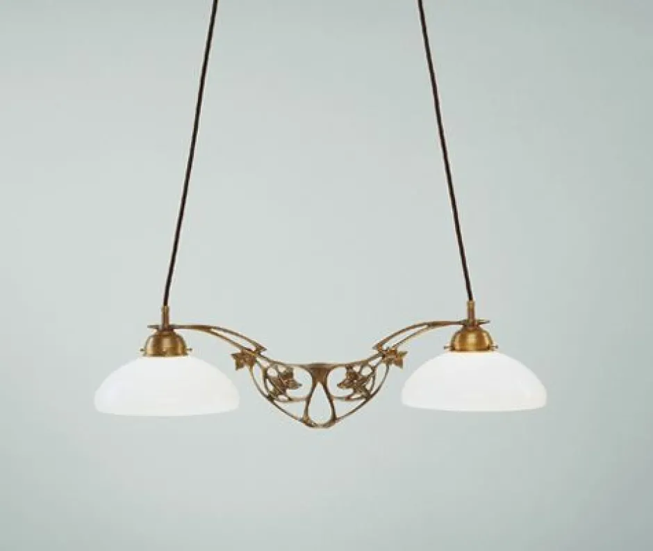 Jugendstil Pendelleuchte aus Messing und Glas