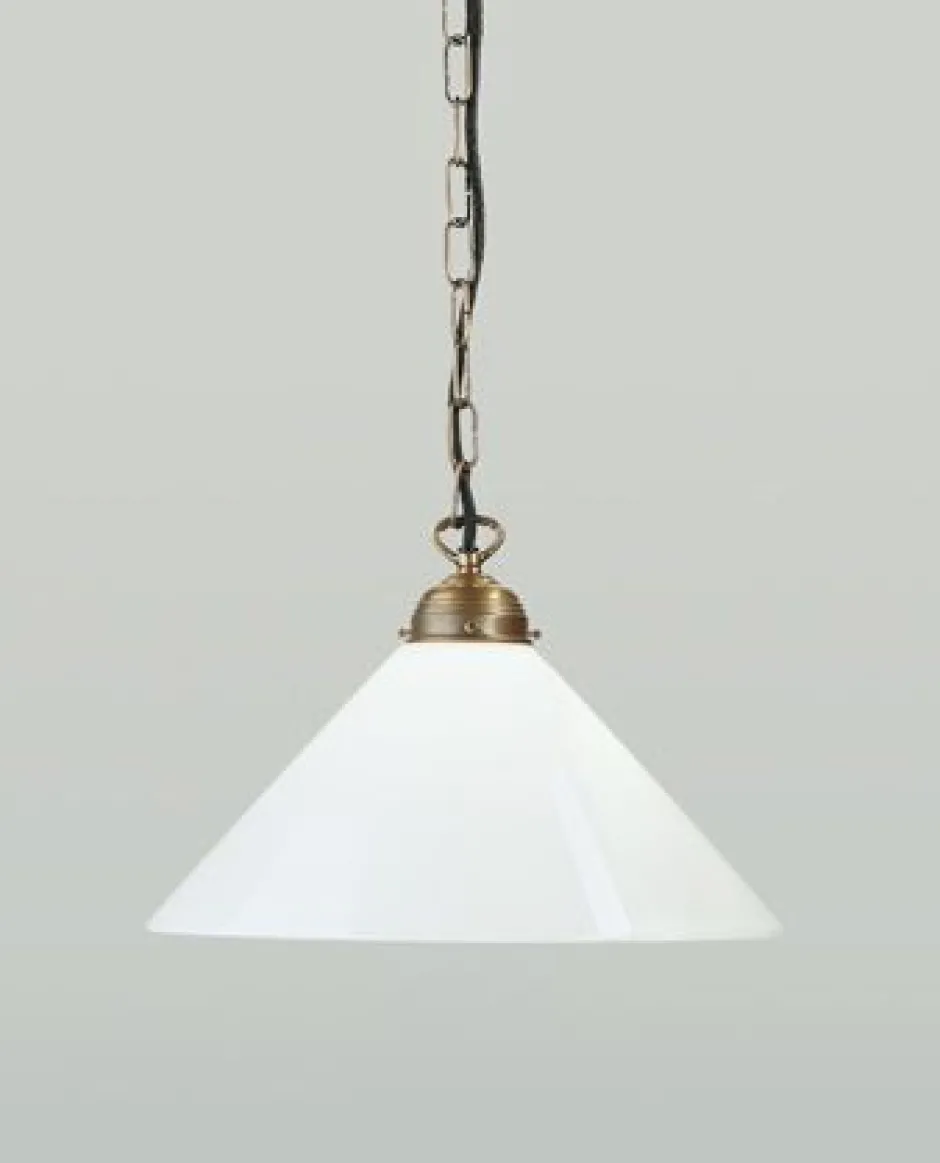 Jugendstil Pendelleuchte aus Messing und Glas