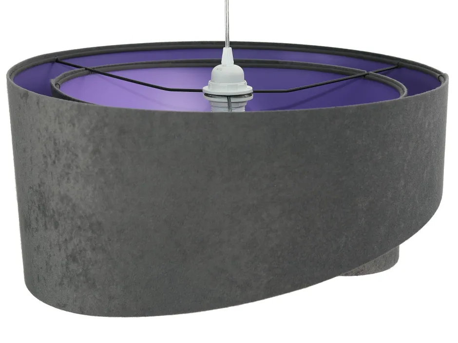 Außen besteht der Schirm aus dunkelgrauem Microfaser-Stoff in Velours-Optik (Durch die Oberflächen kann der Schirm je nach Licht heller oder dunkler wirken), was einen samtigen Effekt erzeugt